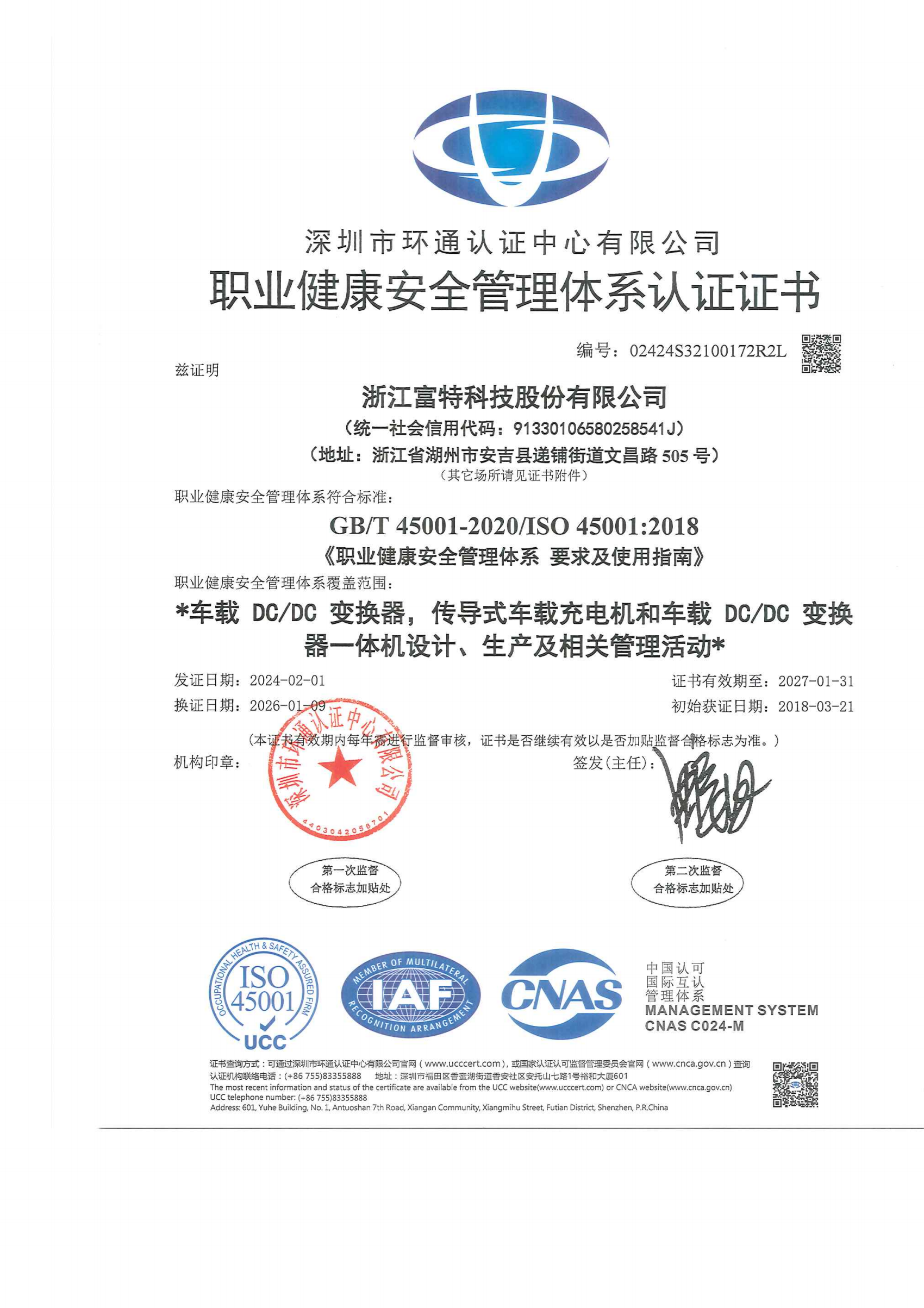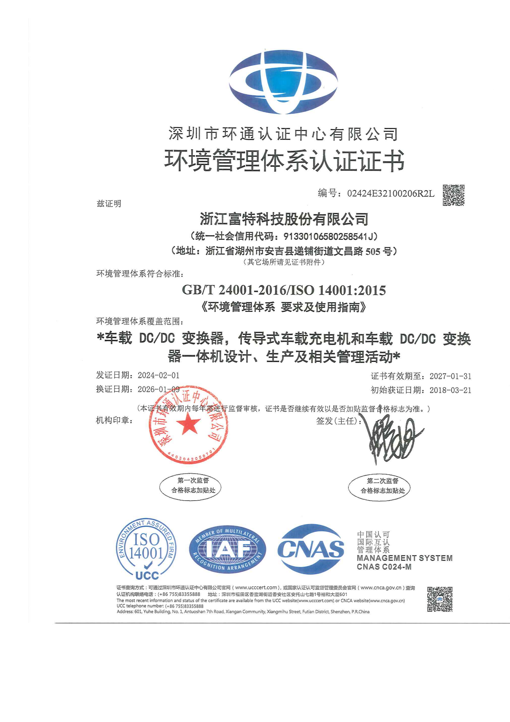 浙江富特科技股份有限公司,成立于2011年8月,生產基地位于湖州市安吉縣,研發中心位于杭州市西湖區、西安市高新區,是一家專注于新能源汽車核心零部件的國家級高新技術企業,是國內新能源汽車車載充電機及車載 DC/DC 轉換器的主要供應商。