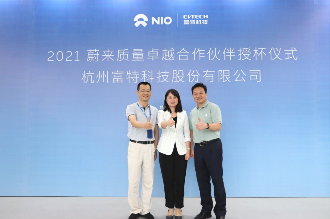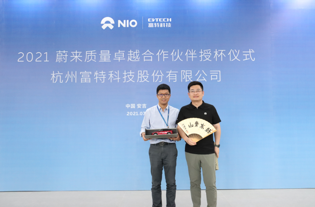 7月9日下午,2021蔚來質量卓越合作伙伴授杯儀式于浙江富特科技股份有限公司安吉工廠舉辦。